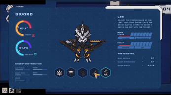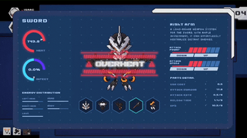 Sword is a powerful robot, but it still has many unstable parts. You'll need to check its status frequently. Press Space to open the manage tab and distribute its energy. Be careful not to use too much energy at once, or its parts might overheat.