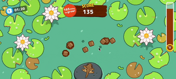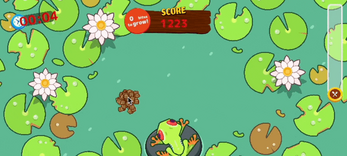 Frogrow is an action game in which the player grows a frog through feeding actions. To make the frogs grow larger, you have to make them eat food as efficiently as possible in time by shaking an arbitrary amount of food and stretching their tongues at the same time. Let's see how far you can raise a frog starting from a mini size!
